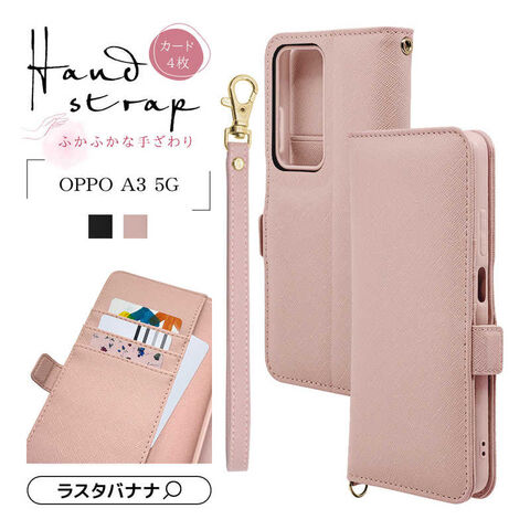 ラスタバナナ OPPO A3 5G ハンドストラップ付き手帳型ケース ブラック 8474OA3BHSBK