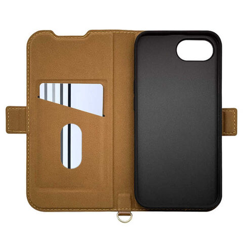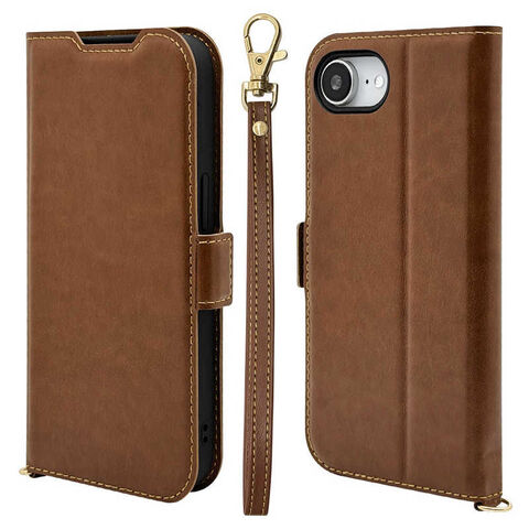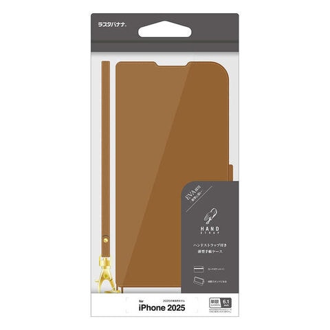 ラスタバナナ iPhone 16e 薄型手帳型ケース+ハンドストラップ サイドマグネット ブラウン 8617IP5EBSMHSBR