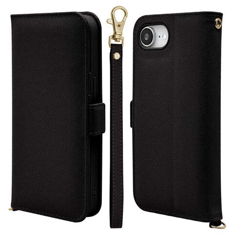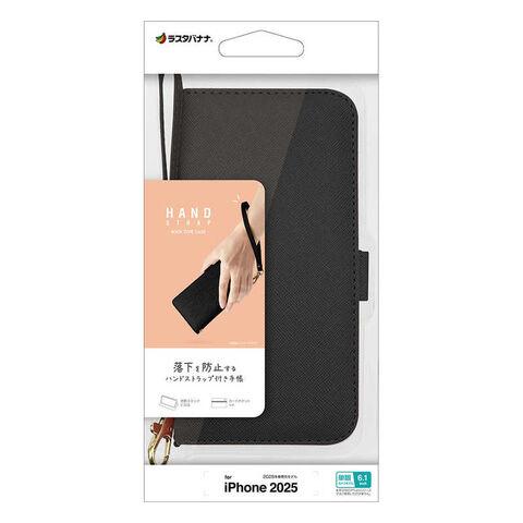 ラスタバナナ iPhone 16e ハンドストラップ付き手帳型ケース ブラック 8618IP5EBHSBK