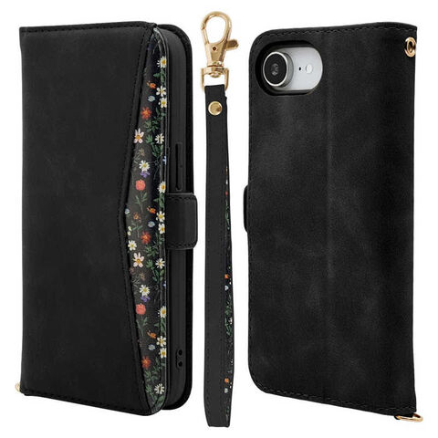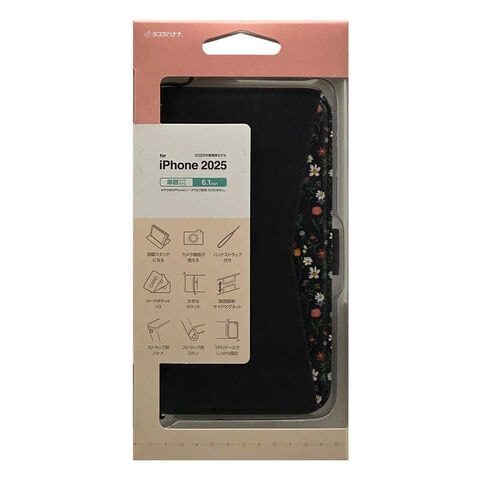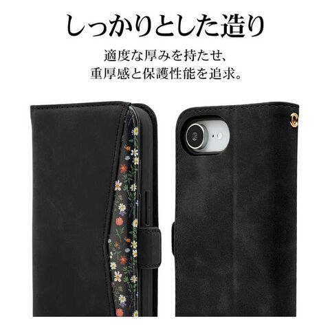 ラスタバナナ iPhone 16e 花柄手帳型ケース ブラック 8622IP5EBHSBK