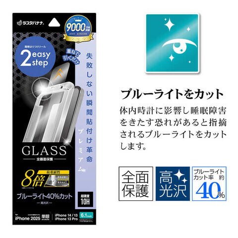ラスタバナナ iPhone 16e/ 14/ 13/ 13Pro ガラスフィルム 瞬間貼り付け革命プレミアム 強度8倍 ブルーライト 高光沢 MTK4743IP5E