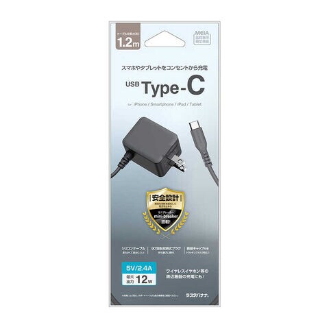 ラスタバナナ  AC充電器 タイプC ケーブル直付 mini-breaker付 1.2メートル USB Type-C typec 1.2m iPhone iPad スマホ タブレット チャコールグレー R12ACC2A04CGRY