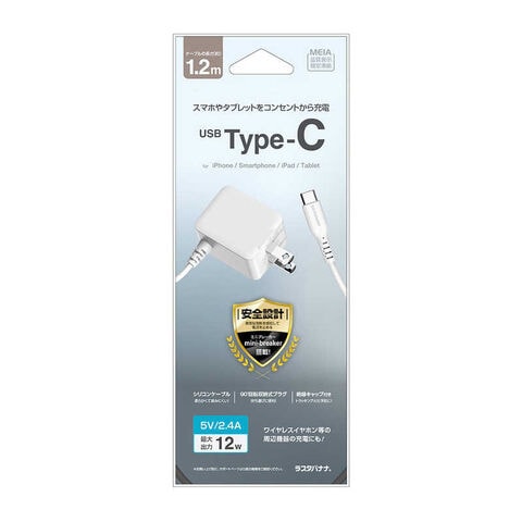 ラスタバナナ 充電器 ACアダプター AC充電器 タイプC ケーブル直付 mini-breaker付 1.2メートル USB Type-C typec 1.2m iPhone iPad スマホ タブレット ホワイト R12ACC2A04WH