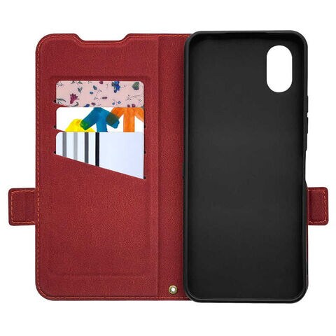 ラスタバナナ かんたんスマホ4 薄型手帳サイドマグネットケース ブラック×レッド 8838KNTN4BSMBKR