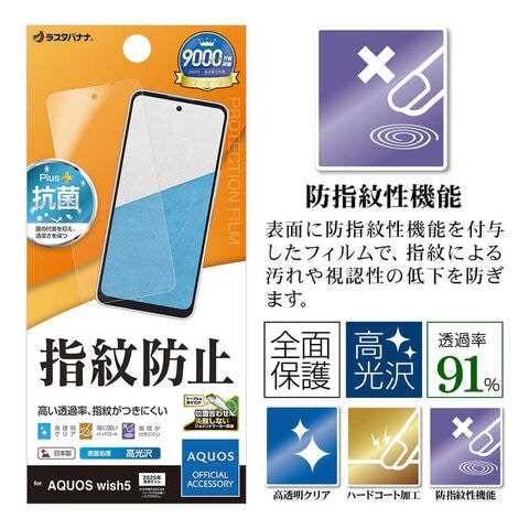ラスタバナナ AQUOS wish5 光沢防指紋フィルム G4836AW5