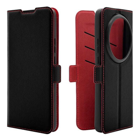 ラスタバナナ Xiaomi 15 Ultra 薄型手帳サイドマグネットケース ブラック×レッド 8851XI15UBSMBKR