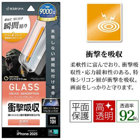 ラスタバナナ iPhone 17フィルム 貼付革命 衝撃吸収ゴリラガラス 光沢 MTK4899IP5A
