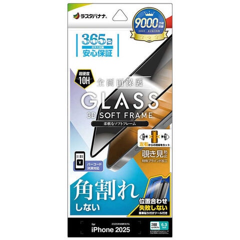 ラスタバナナ iPhone 17 Proフィルム ソフトフレーム ガラス 覗き見防止 治具付 SK4938IP5B
