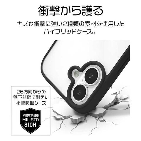 ●側面は弾力と柔軟性を兼ね備えたTPU素材で端末を衝撃から保護し、着脱も簡単です。※衝撃吸収については、一般的なポリカーボネート製ケースと比較した自社検証結果で、無破損、無故障を保証するものではありません。