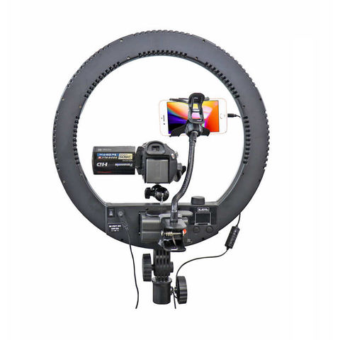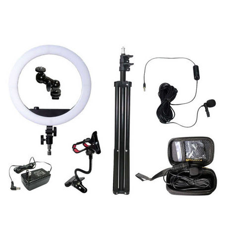 直径360mmのリング型LEDライトにマイク等の周辺機材をプラスした動画配信セットです。