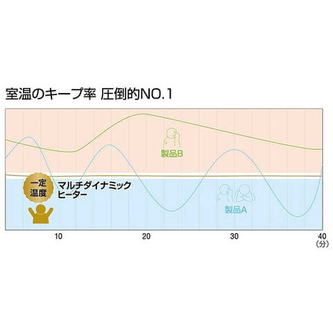 外気が5℃の寒い冬でも、室温が20℃に達するまで25分。従来ヒーターの2倍のスピードでお部屋を暖めます