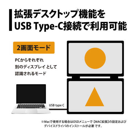 インターフェイス:HDMIx1USB-C (DisplayPort Alt mode) x2 ※※2つのUSB Type-Cコネクターは同一機能ですが、重複する機能の同時使用(映像の2系統入力など)はできません。