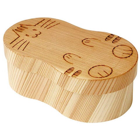 ・弁当箱の蓋に猫の絵柄をあしらった瓢箪型。