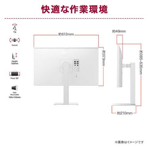 本体サイズ:スタンドあり:幅613x高さ385~535x奥行210mmスタンドなし:幅613x高さ373x奥行49mm