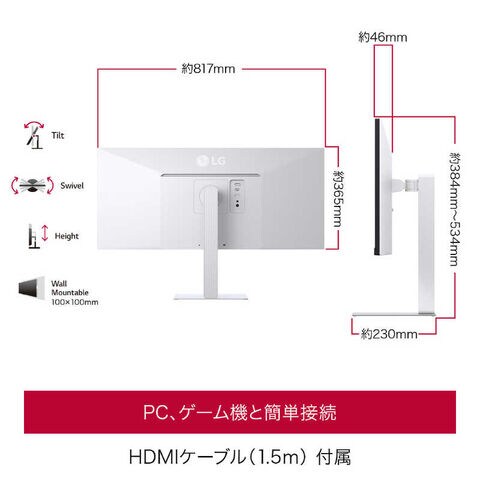 LG UltraWide Monitor 画面が広がる、世界が広がる 34U530A-W