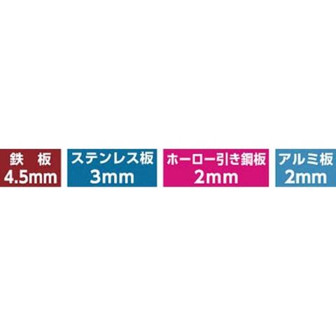●被削材:薄鉄板、ステンレス板(3mm以下)、ホーロー引き鋼板、アルミ板(2mm以下)等。