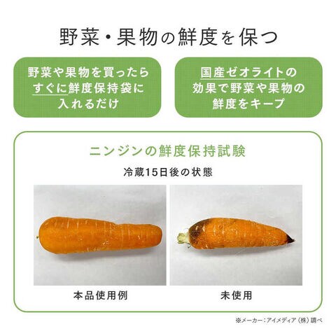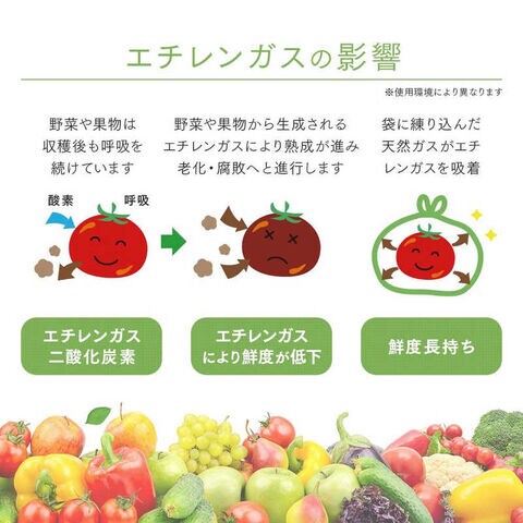 野菜に腐敗する原因の一つのエチレンガスを吸着するので鮮度が長持ちします。