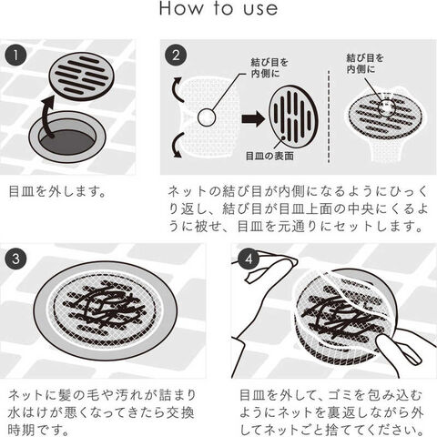 伸縮自在のネットタイプだから排水口の目皿にかぶせるだけで、簡単に取り付けられます。