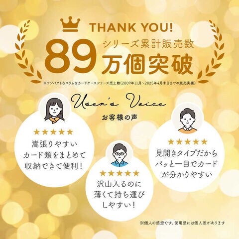 スリムながらも充実の20ポケットを備え、見開きタイプでカードがひと目で分かり、縦型収納で取り出しも簡単。