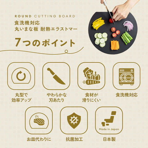 面積の広い丸型で、切った食材を並べて置けるためお皿いらずで調理効率が向上。