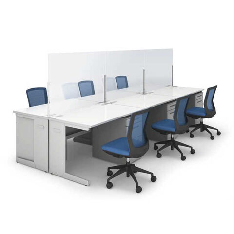 デスクに置くだけで対面への飛沫を予防し、また透明であることから空間の閉鎖感なども軽減します。