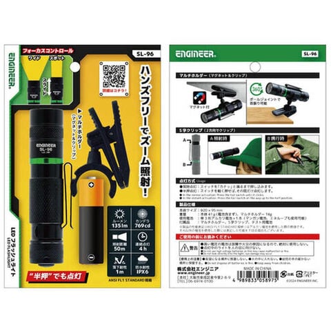 ●ハンズフリーでしっかり照らせるフラッシュライト。