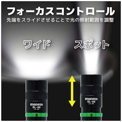 ●先端をスライドさせることでライトの照射範囲を調整できます。