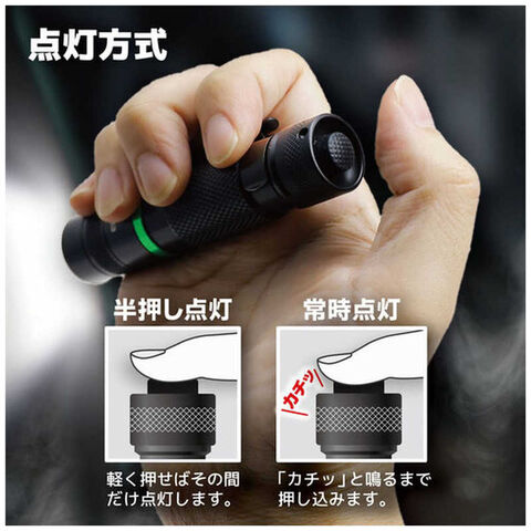 ●半押点灯: スイッチを軽く押すと、その間だけ点灯します。