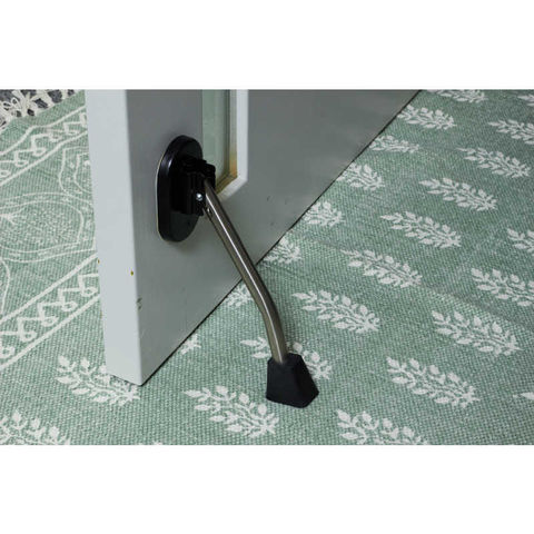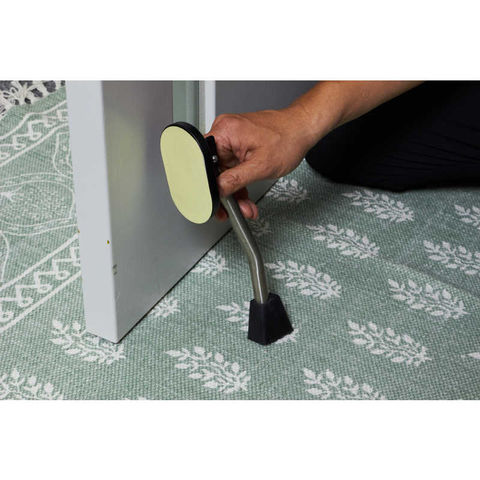 ●両手がふさがっていても、足で軽く押し下げるだけで、ドアをお好みの角度で固定することができます。