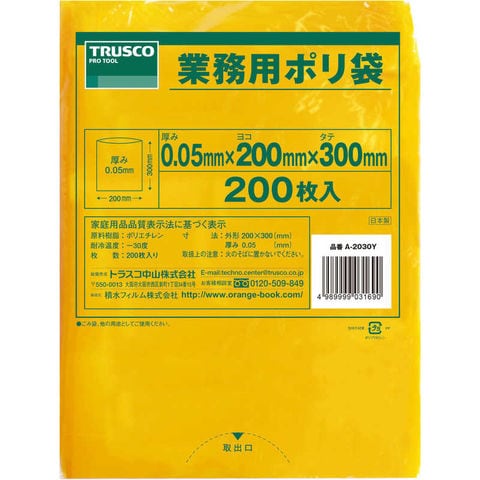 トラスコ中山 小型ポリ袋 縦300X横200Xt0.05 200枚入 黄 A2030Y