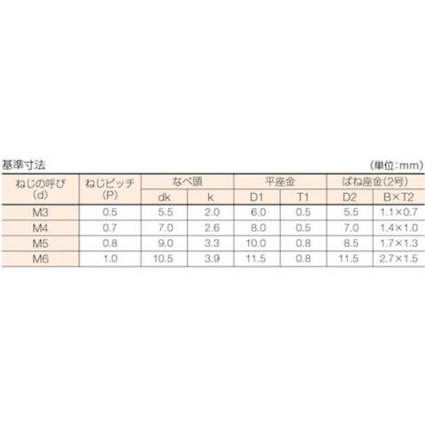 強度区分:4.8、スプリングワッシャー、小形丸ワッシャー(P-4タイプ)付、JIS B1188規格品