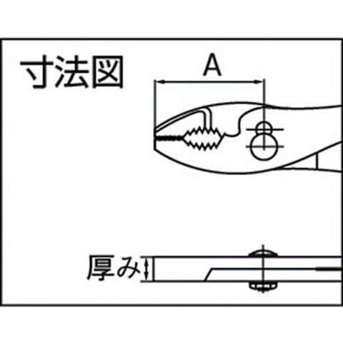 全長(mm):205、厚み(mm):10、A(mm):44、切断能力(mm):φ2.2、B(mm):50.4、質量(g):270