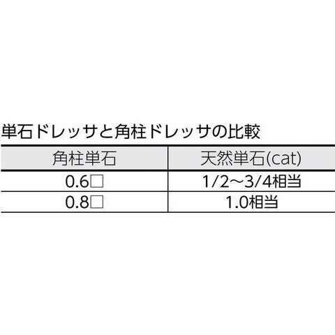 ●角柱ダイヤのため、全面当りした後のダイヤ接触面積の変化が少なく安定したドレッシングが可能で長寿命です。