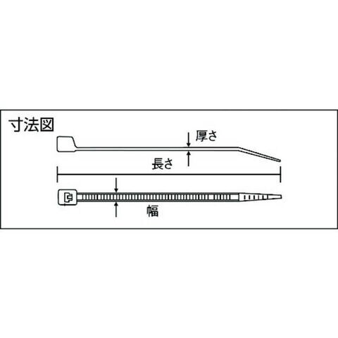 色:白、幅(mm):4.8、長さ(mm):225、厚み(mm):1.3、最大結束径(mm):59×52、引張強度(N):215.6、質量(g):170