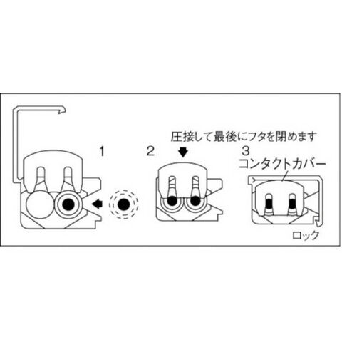 ●電線被覆の除去(皮ムキ)やテーピングも全く不要で、被覆電線をそのまま結線できます。
