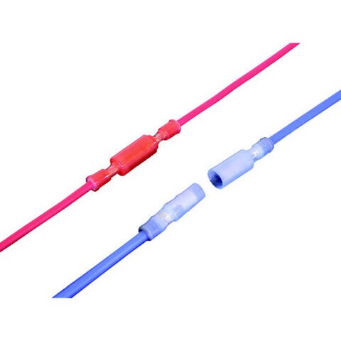 電線抱合範囲より線mm[[の2乗]]:2.0、電線抱合範囲AWG:14、色:青、全長(mm):27.7、形状:オス、外寸(mm):7.4、F(mm):16.5、内寸(mm):3.9、質量(g/パック):18