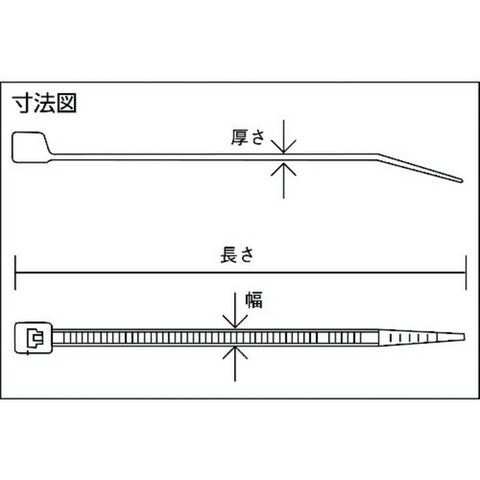 色:黒、幅(mm):4.8、長さ(mm):500、厚み(mm):1.7、最大結束径(mm):147、引張強度(N):215.6