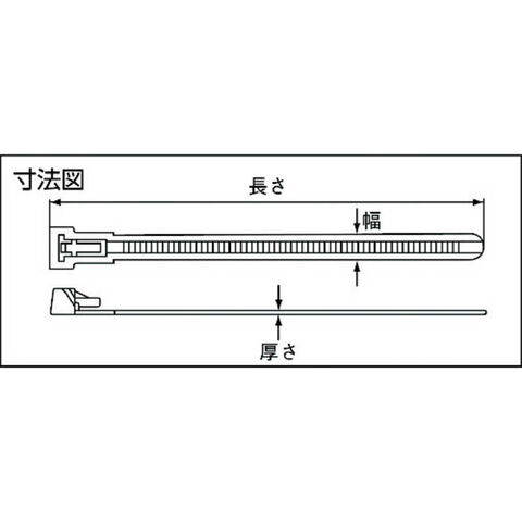 色:黒、幅(mm):7.6、長さ(mm):203、厚み(mm):1.3、最大結束径(mm):58、引張強度(N):539.0