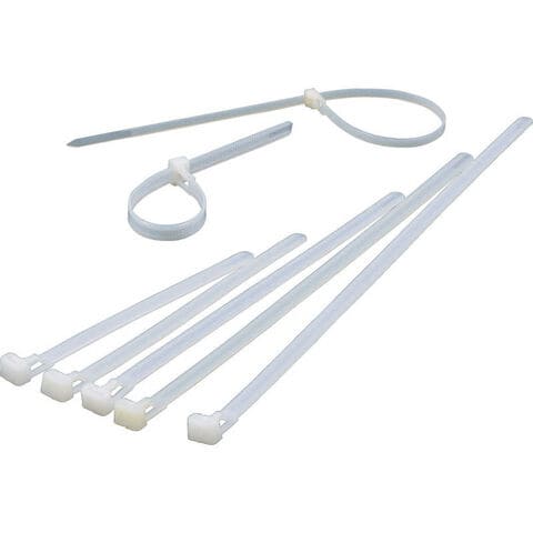 色:白、幅(mm):4.5、長さ(mm):250、厚み(mm):1.2、最大結束径(mm):65、引張強度(N):215.6