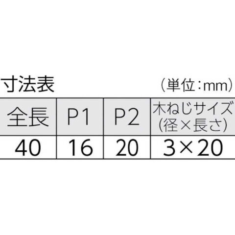 全長(mm):40、幅(mm):30、厚み(mm):1.5、ねじ穴数:4、穴径(mm):3.2、耐荷重(kg)2個使用時:7、D2(mm):7、