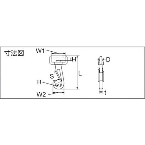 ●使用荷重(kN):0.20●t(mm):7.0●S(mm):9●H(mm):5●D(mm):4●L(mm):63●R(mm):3.0●質量(g):33●W1(mm):31●W2(mm):21.5