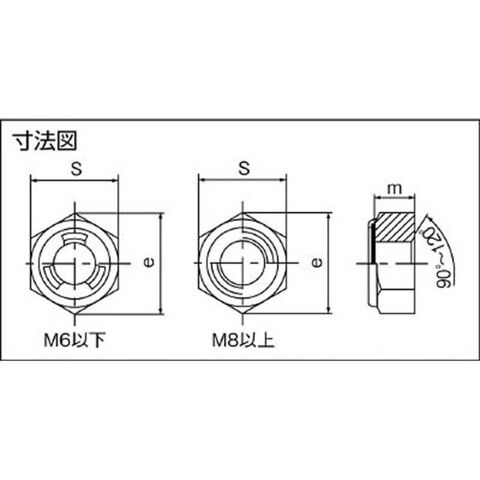 ●呼径:M10×1.50●寸法(mm)s:17●寸法(mm)e:19.6●寸法(mm)m:8.3●質量(g):90.0