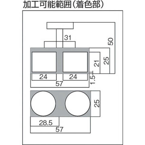 吸着力(N):200、高さ(mm):25、幅(mm):57、奥行(mm):25、取付ねじ:M6×1.00、磁石径(mm):24、