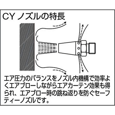最高使用圧力:1MPa、ノズル取付口:G1/8、エア取付口:G1/4、使用流体:圧縮空気、使用温度範囲:-10~60℃