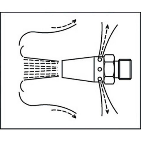●エアバランスを効率良くブローしながらエアカーテン効果も得られ、ブロー時の跳ね返りの吹き付け物を防ぐセーフティーノズルです。流量アップで静音(67dB)タイプです。