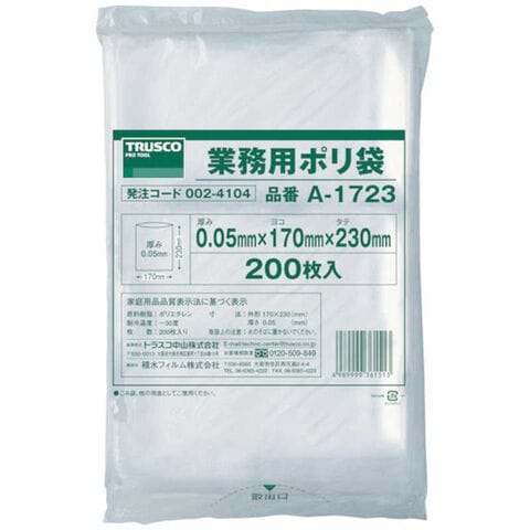 トラスコ中山 小型ポリ袋 縦230X横170Xt0.05 200枚入 透明 A1723