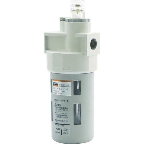 使用圧力(MPa):1、処理空気流量(立米/min):2.0、貯油量(立方センチメートル):200、接続口径:Rc3/8、全長(mm):195、質量(kg):0.41