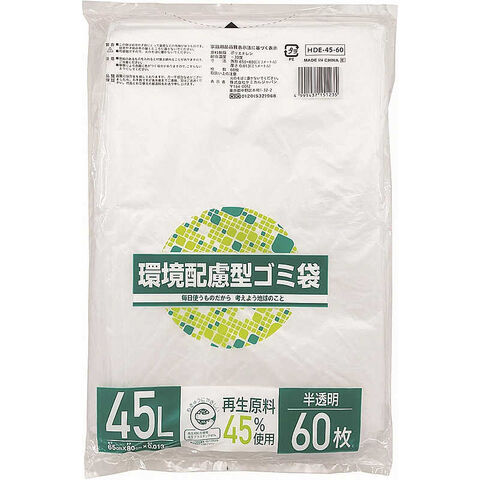 ケミカルジャパン 環境配慮型ゴミ袋 45L60枚再生原料45%