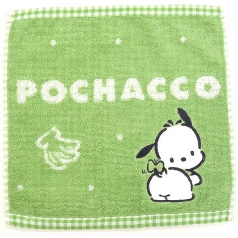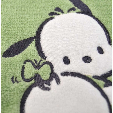 落ち着いた色合いで大きなポチャッコの刺繍がかわいらしいタオルです。
