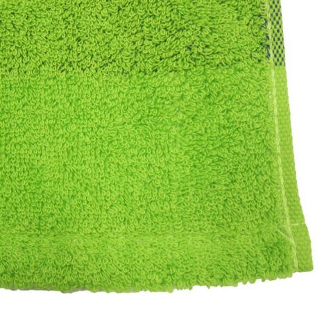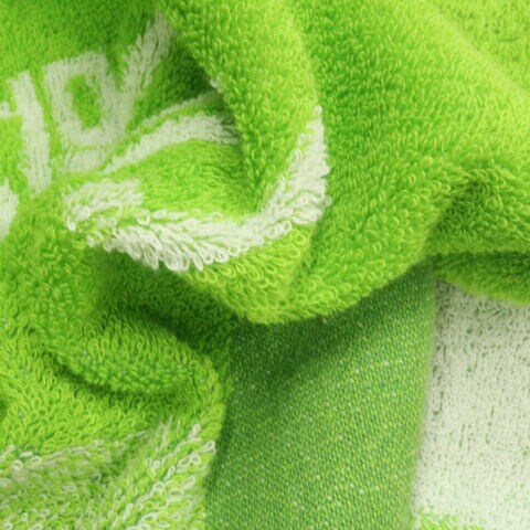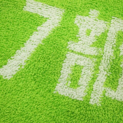 首にかけるとタオルに書かれた部活の名前が読めるようになっています。
